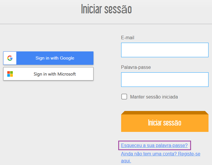 Caso se tenha esquecido da sua senha, pode facilmente solicitar uma nova na página de